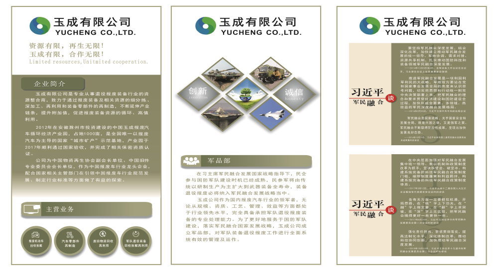 在軍改關(guān)鍵階段,為了更好地服務(wù)于國防軍隊建設(shè),落實軍民融合國家發(fā)展戰(zhàn)略,今年7月公司推新成立了軍品部,便于對軍隊退役報廢裝備進行全面系統(tǒng)有效的管理及運作。